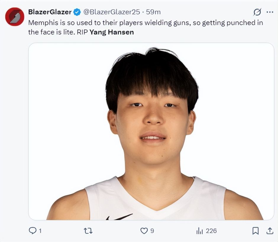 开拓者媒体:灰熊的球员们早已习惯了用这些武器,击中对方的面部对他们来说简直不算什么,RIP杨瀚森。