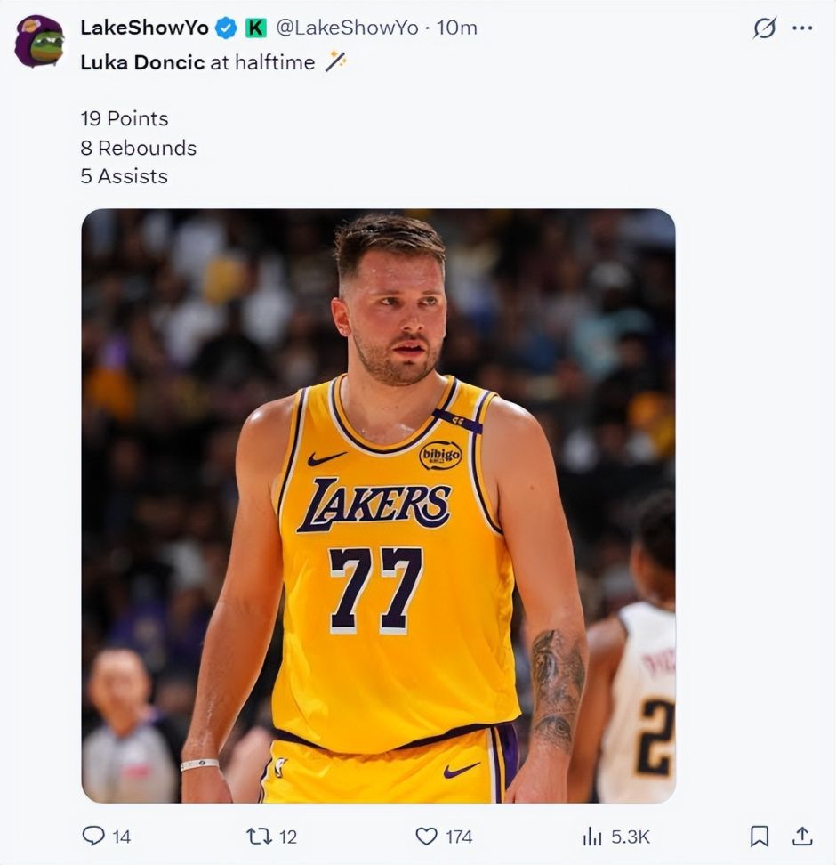 第三节湖人是多点开花,詹姆斯连拿7分,里夫斯也命中三分,东契奇这一节6中2+罚球4中4拿到8分5篮板3助攻,三节打完东契奇27分14篮板8助攻,湖人也从落后7分到反超3分。里夫斯三节12中3。