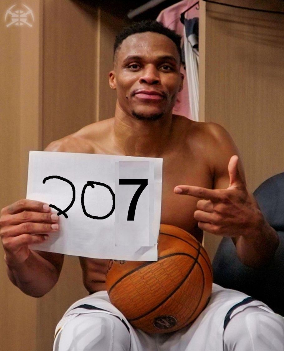 3.这是威少第135次砍下20+三双,反超约基奇登顶20+三双历史榜首;
