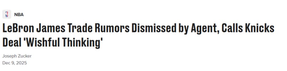 凯勒曼提到了纽约尼克斯队,而这位经纪人将其称为“一厢情愿的想法”。保罗坦言詹姆斯确实能让尼克斯的实力得到提升,但这一点放在联盟其他29支球队身上都成立。