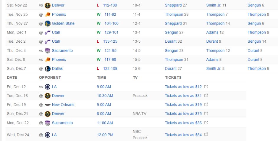 申京因为流感的关系已经缺席了两场比赛,不过在12月9日就已经开始训练,亚当斯对阵独行侠是负荷管理,而伊森腹股沟拉伤还会继续缺席,芬尼-史密斯脚踝手术也继续伤停,范弗利特ACL手术归期未定。