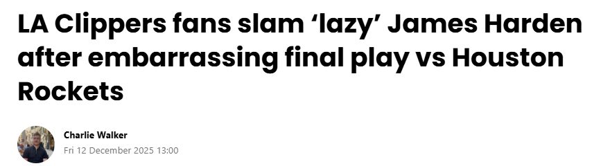 北京时间12月13日,快船在上一场比赛中113-115惜败火箭。哈登最后时刻的表现,引起热议。有快船球迷炮轰哈登懒洋洋,而休城记者也直言不希望哈登回归火箭,因为他在关键时刻总掉链子。